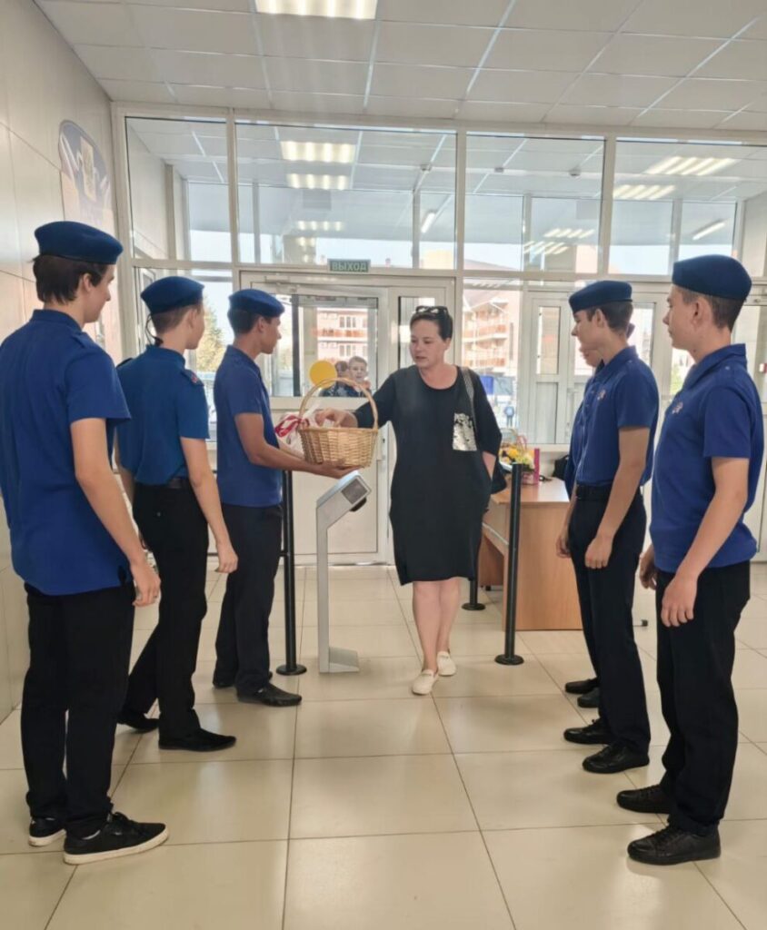 Представители юнармейского отряда ,, Сокол,, провели акцию ,,Примите поздравления,, посвящённую Дню учителя. Перед началом учебных занятий поздравляли педагогов.