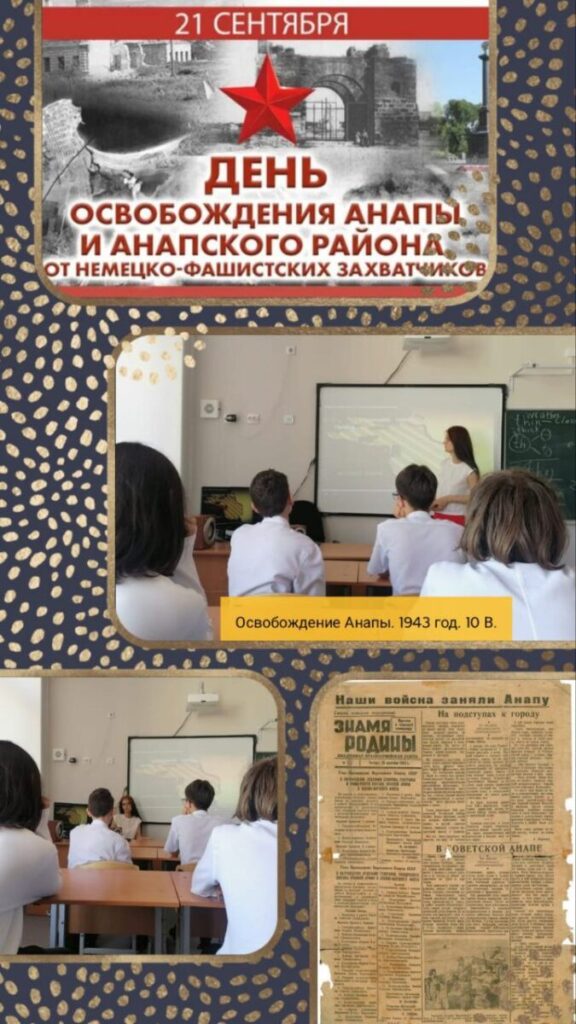 Урок памяти, посвященный Дню освобождения Анапы и Анапского района от немецко-фашистских захватчиков 25.09.2023 Тематические мероприятия, посвященные, 80-летию освободения Анапы и Анапского района проведены 21 сентября.